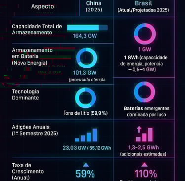 Isso não é território inexplorado. "O formato de contratação resolveu esse mesmo problema em diversos países como Estados Unidos, Chile e China", onde mercados de capacidade e leilões estimularam implantações massivas. Nos EUA, o armazenamento adicionou dezenas de GWh anualmente; o Chile visa 6 GW até 2030; a China, como detalhado, lidera globalmente. O Brasil está atrasado, mas mecanismos semelhantes – como o próximo Leilão de Reserva de Capacidade de 2025, esperado para demandar 3 GWh de armazenamento – poderiam catalisar a mudança. No entanto, obstáculos persistem: as baterias ainda estão caras localmente, os leilões estão patinando, e barreiras regulatórias/tributárias precisam ser resolvido.